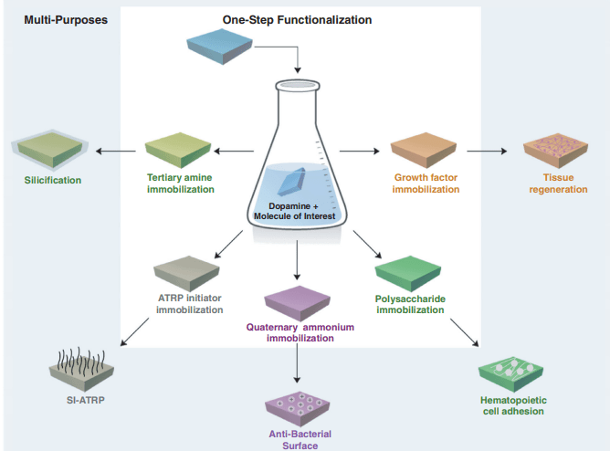 One-Step Multipurpose Surface Functionalization by Adhesive Catecholamine